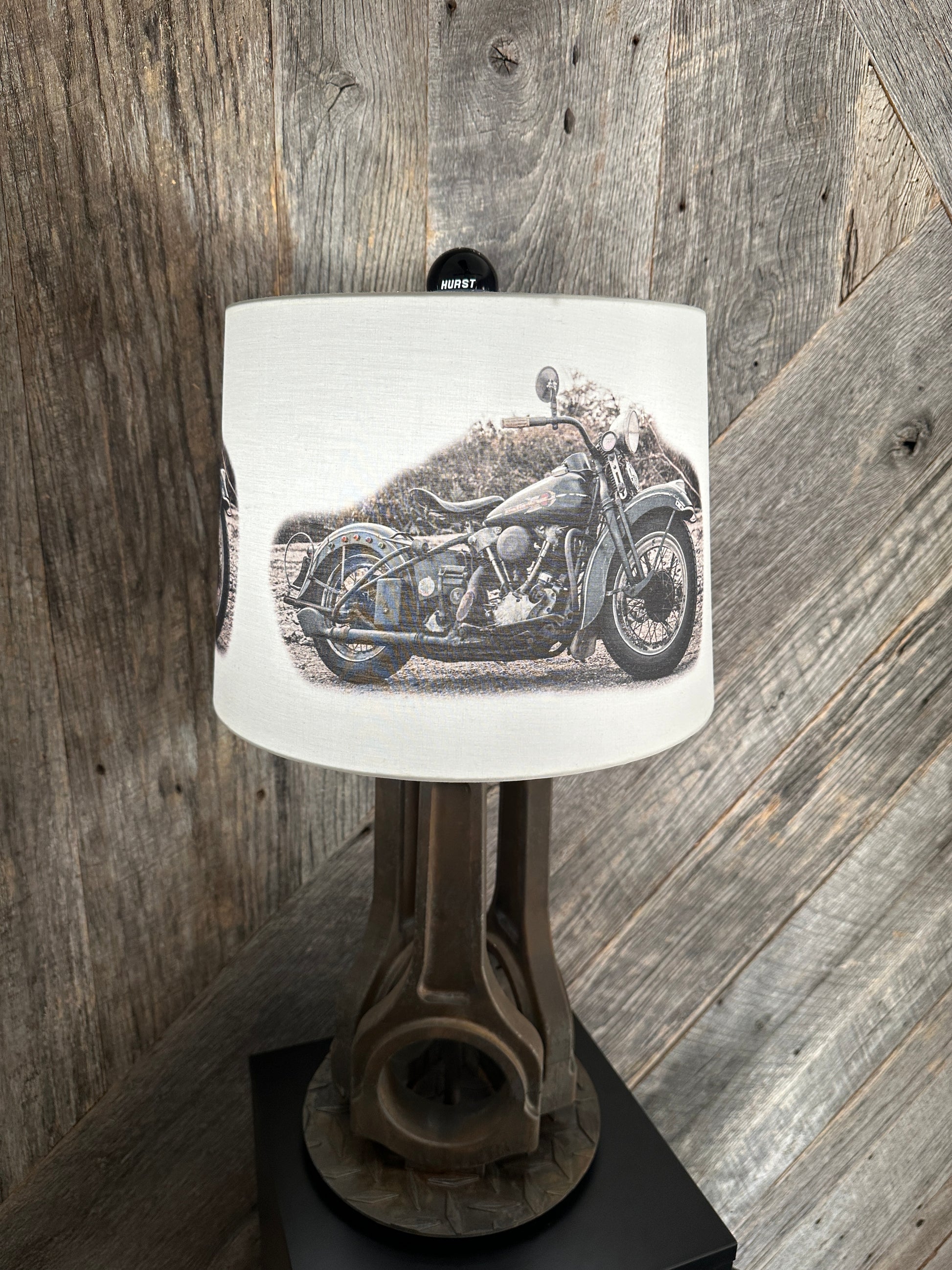 Our personalized Rod lamps feature a traditional cloth shade customized with your provided image. And just like our Rod tables, they are crafted with faux connecting rods made from a strong polymer, boasting one of three metallic finishes (Moonlit Black, Gray Iron or Burnished Oxide). Match the image in the cloth shade with your table, or switch it up, the choice is yours!